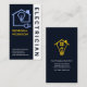 A dark blue and white layered cover features a blue home electrical circuit design. Just below the blue design lies your prestigious name in yellow with the business name and its contact details near the base. Inside the white layer is your inverted job title "electrician". ; You can change the caption remarks to the job title to suit your own needs.