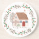 Cosy up with this adorable seasonal kitchen coaster. Coaster has a house with the text home for the holidays. Surrounding the house is a pretty green wreath.