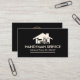 Overleaf, at the top is a gold hammer logo you can use followed by your prestigious name, the contact details and a slogan caption option for you to publicise your services.