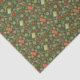 Tissue paper featuring lovely pattern, sewing supplies - scissors, buttons, spools of thread, needles - scattered on bottle green background. This design, elaborated from handmade paper collage, makes a great gifts for crafters and sewers.