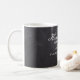 A personalised coffee mug that features the family's last name written on a chalkboard textured background along with the text "Home Is Where The Heart Is". This custom mug makes a great gift for any occasion.