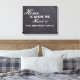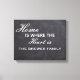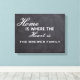 A personalised stretched canvas print that features the family's last name written on a chalkboard textured background along with the text "Home Is Where The Heart Is". This custom canvas print makes a great gift for any occasion.