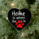 A wordplay with the quote "Home is where the heart is", this heart shaped ceramic ornament has the words "Home is where the [paw print picture] is", with the paw print picture in red, representing the "heart". The perfect gift for pet lovers.