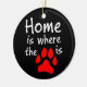 A wordplay with the quote "Home is where the heart is", this ceramic round ornament has the words "Home is where the [paw print picture] is", with the paw print picture in red, representing the "heart". The perfect gift for pet lovers.