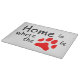 A wordplay with the quote "Home is where the heart is", this cutting board has the words "Home is where the [paw print picture] is", with the paw print picture in red, representing the "heart". The perfect gift for pet lovers.
