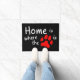 A wordplay with the quote "Home is where the heart is", this black floor mat has the words "Home is where the [paw print picture] is", with the paw print picture in red, representing the "heart". The perfect gift for pet lovers.