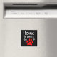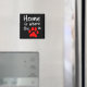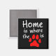 A wordplay with the quote "Home is where the heart is", this square magnet has the words "Home is where the [paw print picture] is", with the paw print picture in red, representing the "heart". The perfect gift for pet lovers.