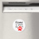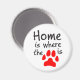 A wordplay with the quote "Home is where the heart is", this round magnet has the words "Home is where the [paw print picture] is", with the paw print picture in red, representing the "heart". The perfect gift for pet lovers.