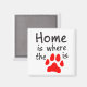 A wordplay with the quote "Home is where the heart is", this square magnet has the words "Home is where the [paw print picture] is", with the paw print picture in red, representing the "heart". The perfect gift for pet lovers.