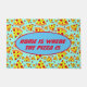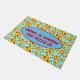 Colourful and trendy aqua blue doormat printed all over with slices of pepperoni pizza, with the phrase HOME IS WHERE THE PIZZA IS. Perfect for pizza lovers, pizza chefs and pizzeria restaurant decor