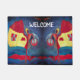 Abstract painting - Home Knight- house, man, moon and good mood.Welcome text.