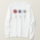 This white long-sleeve women's t-shirt features a beautifully simple and meaningful patriotic design. Across the chest, three daisy-like flowers are illustrated in a charming hand-drawn style—one in vibrant red, one in crisp white, and one in bold blue. Each flower’s black ink stem gently curves downward in an elegant flow, transforming into graceful handwritten script. Together, the stems form the heartfelt phrase “Home of the Brave” in a continuous line of text. The design blends floral beauty with American pride, perfect for summer celebrations, Memorial Day, Independence Day, or everyday wear with a message of strength and unity.