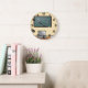 Wall Clock, 25.4 cm Round Black Wooden Frame