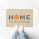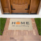 This charming fall doormat features "Home" in bold lettering with a sweet orange pumpkin replacing the "O," paired with your family name in elegant script on a warm rustic tan textured background. A festive seasonal welcome for your front porch from September through Thanksgiving. Family name is fully customizable.