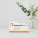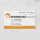 A graphic depiction of a house with a sun setting in back serves as the graphic element on this business card that is perfect for realty companies or home mortgage professionals. The bright orange and taupe tones are inviting while the colour panels call out your business name and website or other important information at the bottom. The back is solid taupe but can be customised to any colour. The text printing on back can also be customised or deleted entirely. Available in alternate colours with matching products.