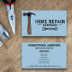A blue business card with an illustration of a hammer and wrench. There are fully customisable information on the back, including a list of services. Perfect for all kinds of repair activities, such as handyman, home repair services, plumbing, etc.