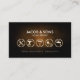 This home repairs skilled trade business card features five gold icons related to home repairs (tools, power drill, paint roller brush, electric plug and water faucet). Perfect for handyman, house repair, home repair, contractor, builder, building, construction, renovation, remodeling themes.