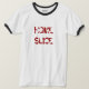 Great T-Shirt, looks cool, good thickness and fits well. Slightly lighter than expected, not pitch black, more of a faded black, but still looks good.