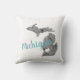Michigan Floral Filled Silhouette With "Michigan" Throw Pillow with "Michigan" in cursive Typography. A great gift for any Michigander. This pillow has the Michigan silhouette filled with a poppy floral pattern in greys and blues with a white heart. Design by The Michigander.