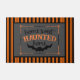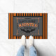 Halloween decor featuring bold orange and black striped background with centre "Home Sweet Haunted Home" word art