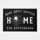 Greet guests this Halloween with our Personalised Home Sweet Haunted Home Spooky Spiderweb Halloween Doormat, designed for those who adore a dark aesthetic. This durable outdoor doormat is perfect for porches or entryways, bringing a touch of gothic home decor to your space. Featuring the phrase "Home Sweet Haunted Home," the second "O" in "Home" is uniquely transformed into a hanging spider spinning its web. The crisp white text and illustrations contrast beautifully against the black background, creating a striking and scary look. You can also personalise the doormat with your family's last name at the bottom, styled in an elegant vintage font to enhance its gothic allure.