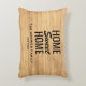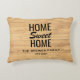 A personalized throw pillow that features a light wood textured background with the quote "Home Sweet Home". Add your family's last name to this product to give it a personal touch.