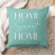 A lovely message pillows says Home Sweet Home in a lovely typography pairing. Below that, add your name and info for a personalised decor for your home. Beautiful aqua green solid pillow sets off other pillows in the same colours or works for mix and match. Stylish design is great for a sun porch (switch to outdoor fabric) or living room. Also, a lovely colour for a bedroom or dorm room!