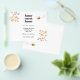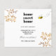 A chic white background decorated with faux gold botanical sprigs, foliage. With the thext: Home Sweet Home. One happy, smiling bumble bee. Personalise and add your new address and name. Black text.