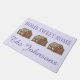 Welcome mat features an original marker illustration of a candy-covered gingerbread house, with HOME SWEET HOME in a fun purple font.