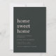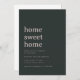Welcome friends and family to celebrate your new beginnings with a simple yet elegant fall-themed housewarming party invitation. The invitation features a rich dark green background, evoking the cosy and inviting spirit of the season. On the left side, in a soft, light beige font, the headline "Home Sweet Home" stands out, warmly inviting guests to join in the festivities. Below the headline, the party details are clearly presented, ensuring all the essential information is easily accessible. This beautifully designed invitation captures the essence of autumn and the joy of a new home, setting the tone for a memorable and heartwarming celebration.