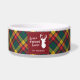 Cute home sweet home Christmas chilli bowl you can easily customise by clicking the "Personalise" button, Featuring and deer silhouette and clan Buchanan tartan in green, yellow, and red check.