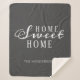 Designed with customisable grey background on the front side and "Home Sweet Home" in white calligraphy script and block lettering typography on the centre. Personalised with family's last name on lower front side of blanket. Makes a great gift idea for newlyweds, couples housewarming with new home, birthdays, anniversaries or anyone on any occasion.