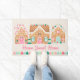Welcome everyone to your home this holiday season with this adorable gingerbread house door mat. This design features a festive Gingerbread house decorated with pink, green and white. The greeting reads "Home Sweet Home." Coordinates with the Gingerbread Party collection.