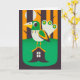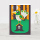Beautiful illustration of a bird standing on his top of his house on a hill. He's home sweet home and King of the hills! This card can be used for multiple purposes: new home, Halloween, just because and more uses.