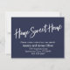 Keep your friends and family up to date with your new address using these simple, elegant announcement cards. You can insert them into your wedding-themed mailings or share them in person, as you see fit. Whether you're a newlywed or just want a unique design for letting your tribe know how to find you, this card is versatile enough for anyone. It features pretty typography graphics that read "Home Sweet Home" on the front and "Stay in touch!" on the back, using a modern, casual, handwritten script font. Use the template fields to add all your own details to personalise this design for your own use. The white type was placed over an editable navy blue background; you can change this to any colour you wish. // 105 //