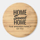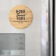 A personalized refrigerator magnet that features a light wood textured background with the quote "Home Sweet Home". Add your family's last name to this product to give it a personal touch.