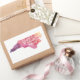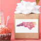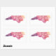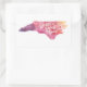 This design features a watercolor map of the US State of North Carolina with a multicoloured, pink, purple, red and orange hand painted watercolor texture. Map is isolated on a white background and "home sweet home" stylised text is added overtop.