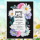 Invite your friends and loved ones to help you celebrate your new home with this vibrant black-bordered floral housewarming invitation featuring pink and purple flowers, white daisies, and greenery surrounding the text.