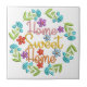 Add a personal touch with a custom-made ceramic tile. Home Sweet Home Quote Colourful Flower Border on a Decorative Ceramic Tile. The tile is perfect for adding a unique style to your home decor, whether you use it as a coaster, a wall hanging, a trivet, on a bathroom wall, or as a kitchen backsplash. Available in two different sizes. Great gift idea.