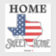 This patriotic sticker or decal features an American Flag inside the state of Texas with the quote "Home Sweet Home." Perfect for the patriotic Texas resident or person who calls Texas their home.