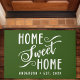 This design features the words "home sweet home" written in a hand lettered calligraphy script font. Personalise this cute rustic design with your family name and year established. The perfect unique modern housewarming gift for new homeowners or newlyweds.