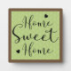 "Home Sweet Home" sentiment in modern script on light green and white Scandinavian style leaves pattern with brown border