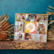 Home Sweet Home, modern elegant unique stylish floral design framed in a circle in soft gradient shades background of yellow and orange, easy to personalise with the family name and photos.