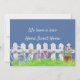 Blue Change of Address Cards with beautiful watercolor garden scene. These charming moving cards have a watercolor picture of the idyllic white picket fence and green grass lawn. The design also features a cute robin, a potted pansies, lavender and a butterfly. The neat script calligraphy reads "We have a new Home Sweet Home". The watercolor print of the white picket fence garden is also on the back of the card, along with your new address, message (optional) and your names. A blissful design to let everyone know you have moved to your new home sweet home. Please browse our new address collection for coordinating mailing labels or different card formats.