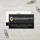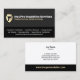 silhouette vector of spray foam insulation gun with white insulation spray against gold gradient shield. Black business card background. Business card also includes services listed.