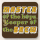 This "Les Miserables" inspired design for beer brewers says, "Master of the hops. Keeper of the brew." The words "master" and brew" are done in beer colours with bubbles. The rest is green, with the "o"s replaced by hops and part of the "K" replaced by a key. A great coaster for a homebrewer or a brewmaster.