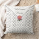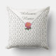 Elegant homecoming grey dotted geometric pattern and pink rose flower Throw Pillow. Beautiful silver grey dotted hexagons on white colour background. Welcome Home text on the front side can be personalised.