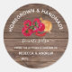 Give your homemade sauce the finishing touch with a personalised label.  The sticker features a onion and chilli tomato illustration on Barnwood. The text reads homegrown & handmade from the kitchen of  _______, this template is ready for you to add details to.