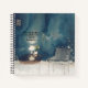A unique personalised Aurelius quote abstract blue journal, with a homely table lamp and chair. An inspirational gift idea.