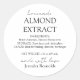 Elegant bottle label for homemade almond extract featuring bitter almond ingredients and professional specifications. Waterproof vinyl construction withstands kitchen conditions. Perfect for home bakers and gift makers creating authentic almond extract.